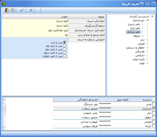 حدود اختيارات كاربر در سيستم حسابداري
