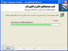 در اين مرحله پنجره "نصب سيستم هاي مالي و اداري بكر" نمايش و نصب اجزاي انتخاب شده برنامه ها آغاز مي شود. بديهي است كه نصب برنامه ها زماني را به خود اختصاص خواهد داد.