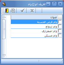 اين پنجره، به منظور تعريف عناوين وام هاي موجود در سطح سازمان، تعبيه شده است كه ميتوان در احكام استخدام از آنها استفاده نمود.