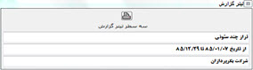 در اين قسمت امكان تعيين تيتر گزارشات تا سه سطر، ميسر مي باشد. درصورت تهيه گزارش از اطلاعات صفحه جاري، اين عناوين به عنوان تيتر گزارش، در نظر گرفته خواهد شد.