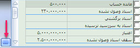 - با استفاده از اين كليد ميتوان مانده اعتبار مشتريان را در آيتم هاي مانده حساب، اسناد وصول نشده، اسناد برگشتي، اسناد به سررسيد نرسيده، اعتبار و سقف اسناد وصول نشده مشتري را رويت نمود. با زدن تيك گزينه مانده حساب، مانده حساب مشتري در حوزه روبرو(مانند شكل) نمايش داده خواهد شد. با كليد Esc نيز ميتوان اين پنجره را محو نمود.
