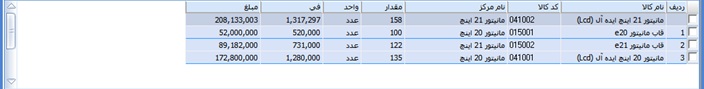 با انتخاب كد كالا، نام آن در ستون"كد كالا" بطور اتوماتيك نمايش خواهد يافت.