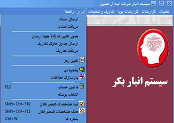 اين بخش ، به تشريح ابزارهاي موجود در انبار اختصاص داشته و دربرگيرنده عناوين ارسال اسناد، دريافت اسناد، جدول تغيير كد جهت ارسال، ارسال جداول حاوي تعاريف، دريافت تعاريف ميباشد، ساير آيتم هاي اين قسمت را ميتوانيد از ابزار واقع در منوي مشركات مطالعه نماييد.